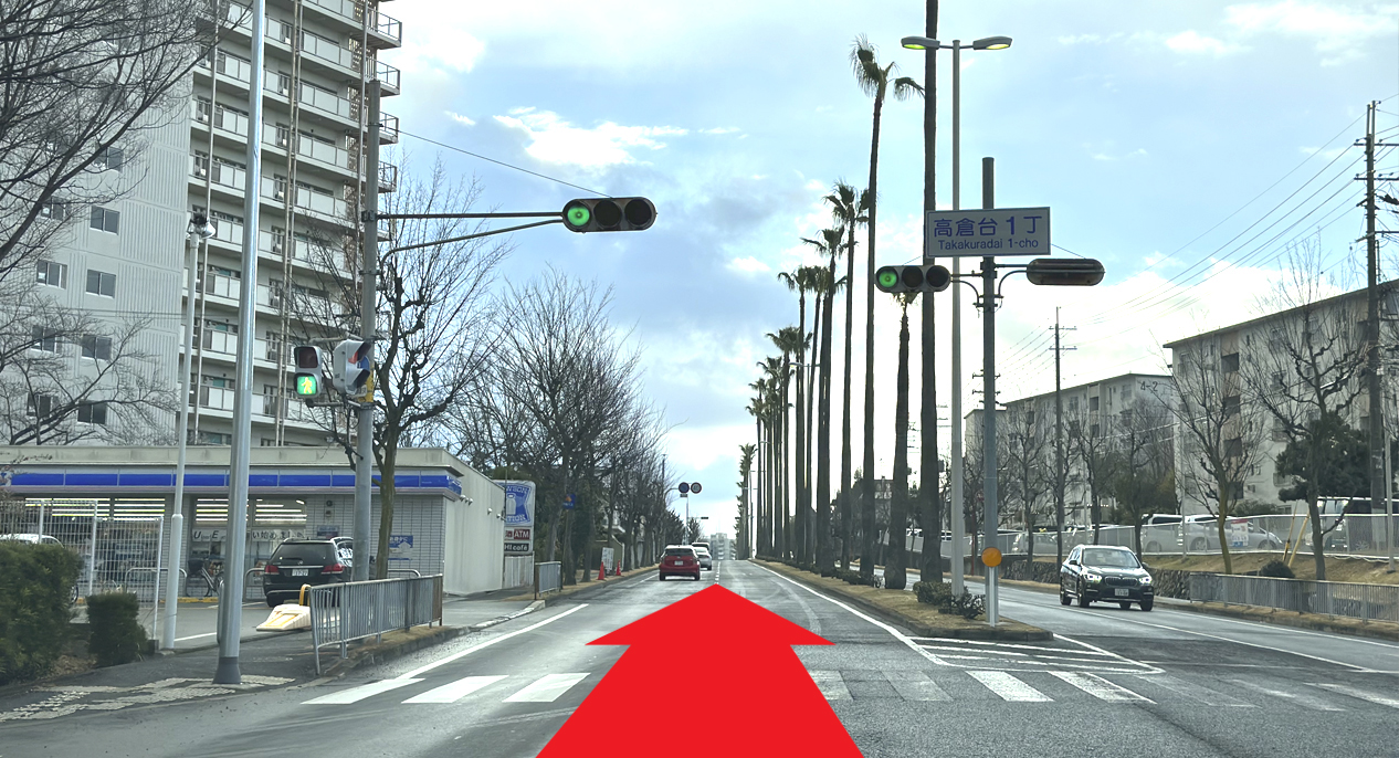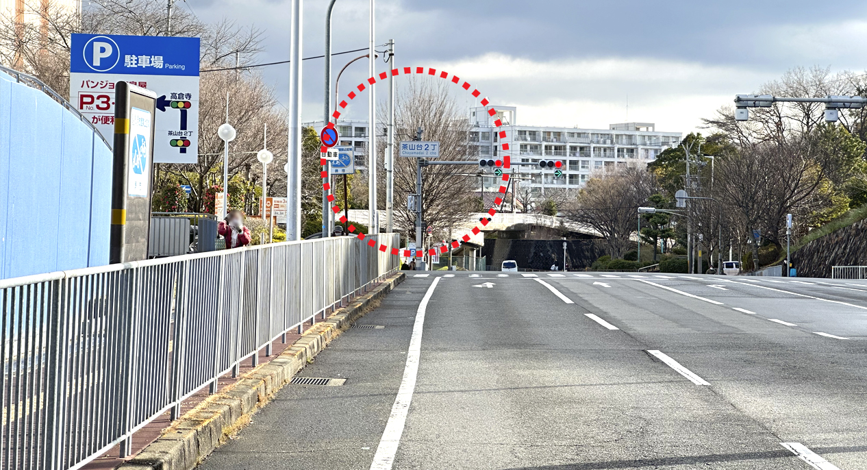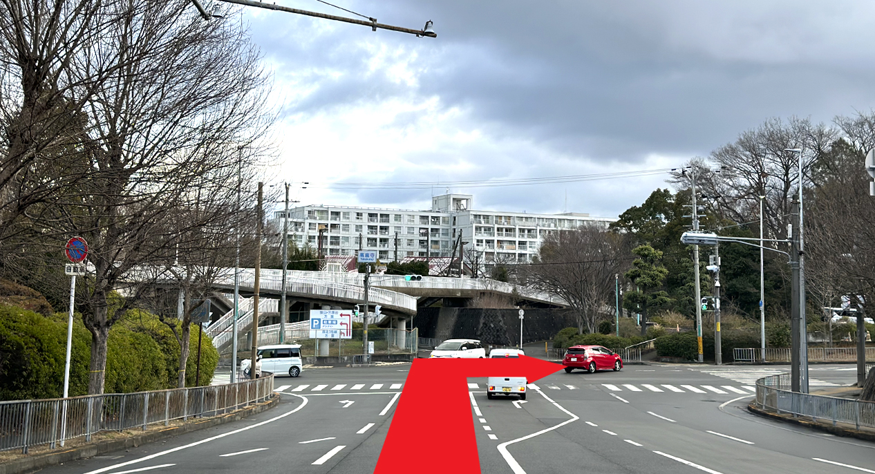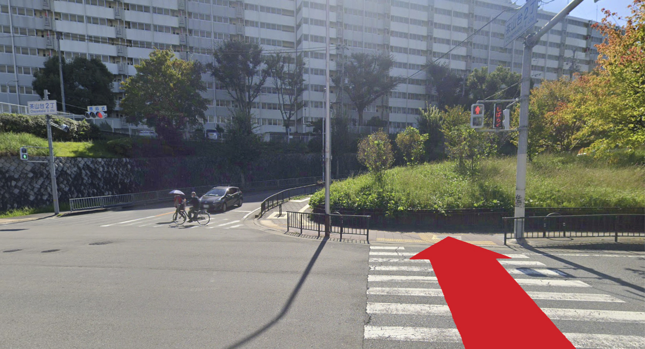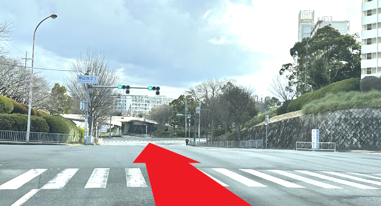 「茶山台2丁」交差点までまっすぐ進んでください。