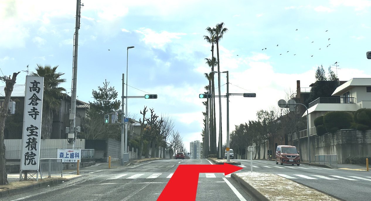 「高倉寺 宝積院」の看板がある交差点を右に曲がります。