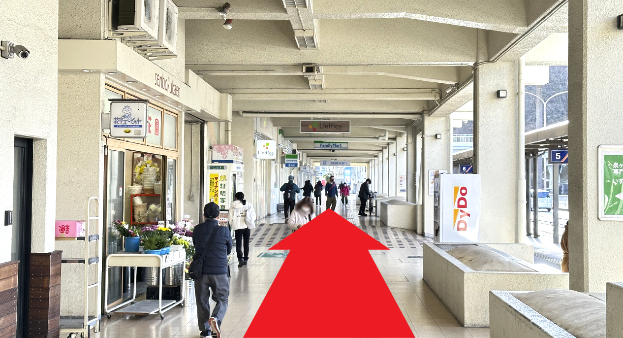 泉ヶ丘駅の改札口を出て、突き当りを右方向に進んでください。