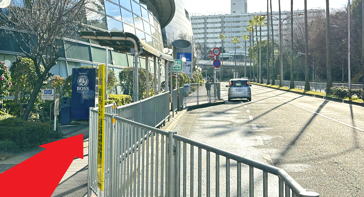 ビック・アイ前の「泉ケ丘交番前」交差点を直進。