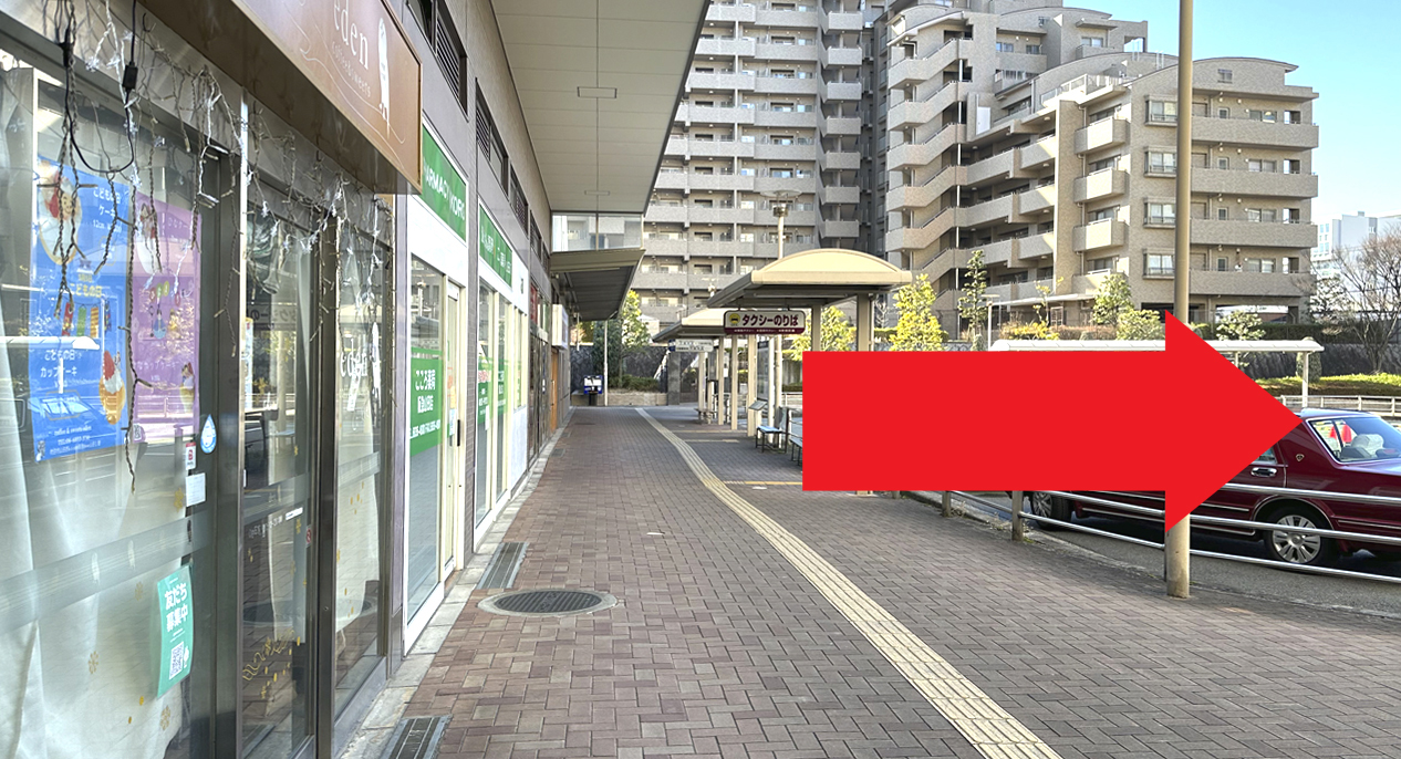 駅を出たら右方向にお進みください。