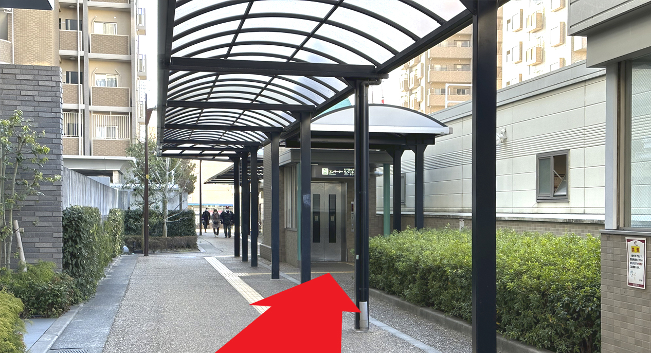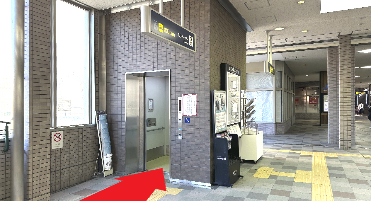 山田駅の改札を出て、エレベーターで1階へお進みください。
