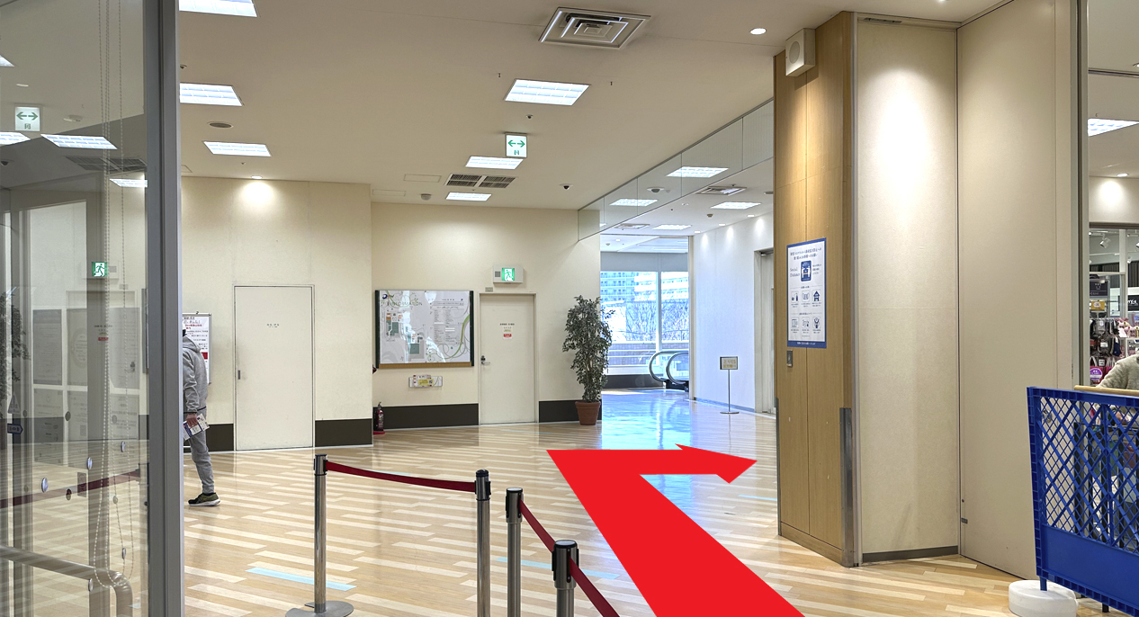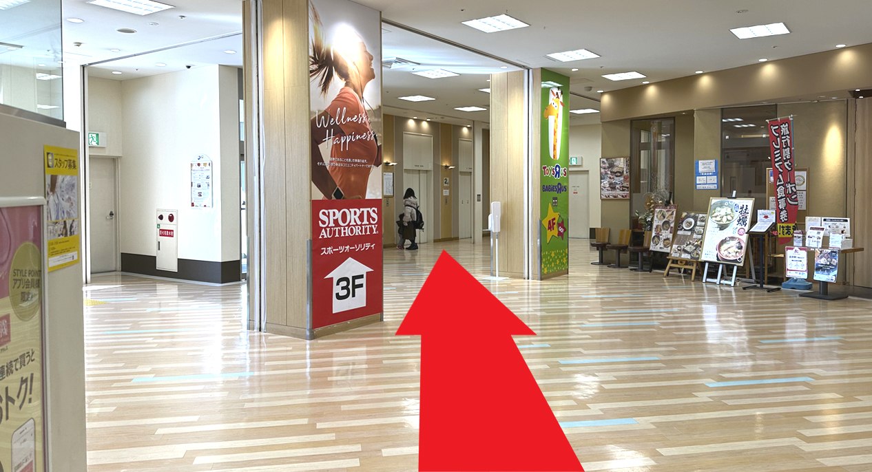 エレベーターを降りて左方向へお進みください。