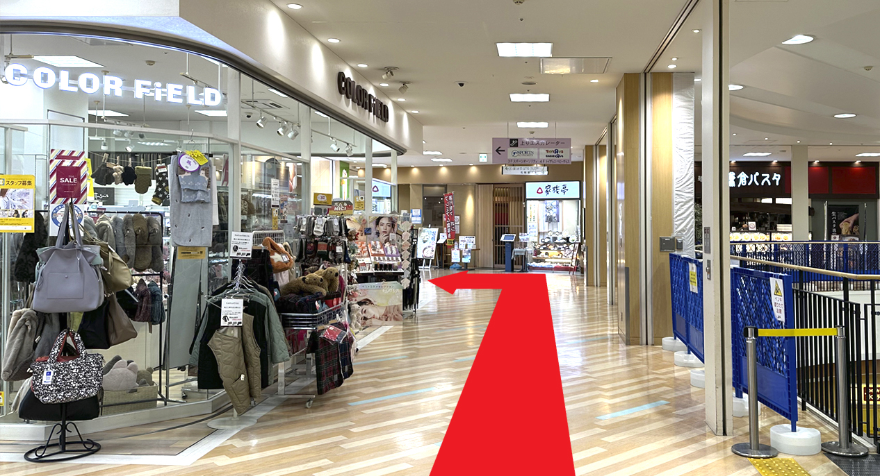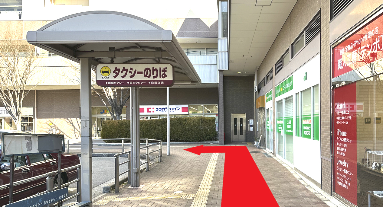 Dew阪急山田(9時オープン)に入って左方向にお進みください。