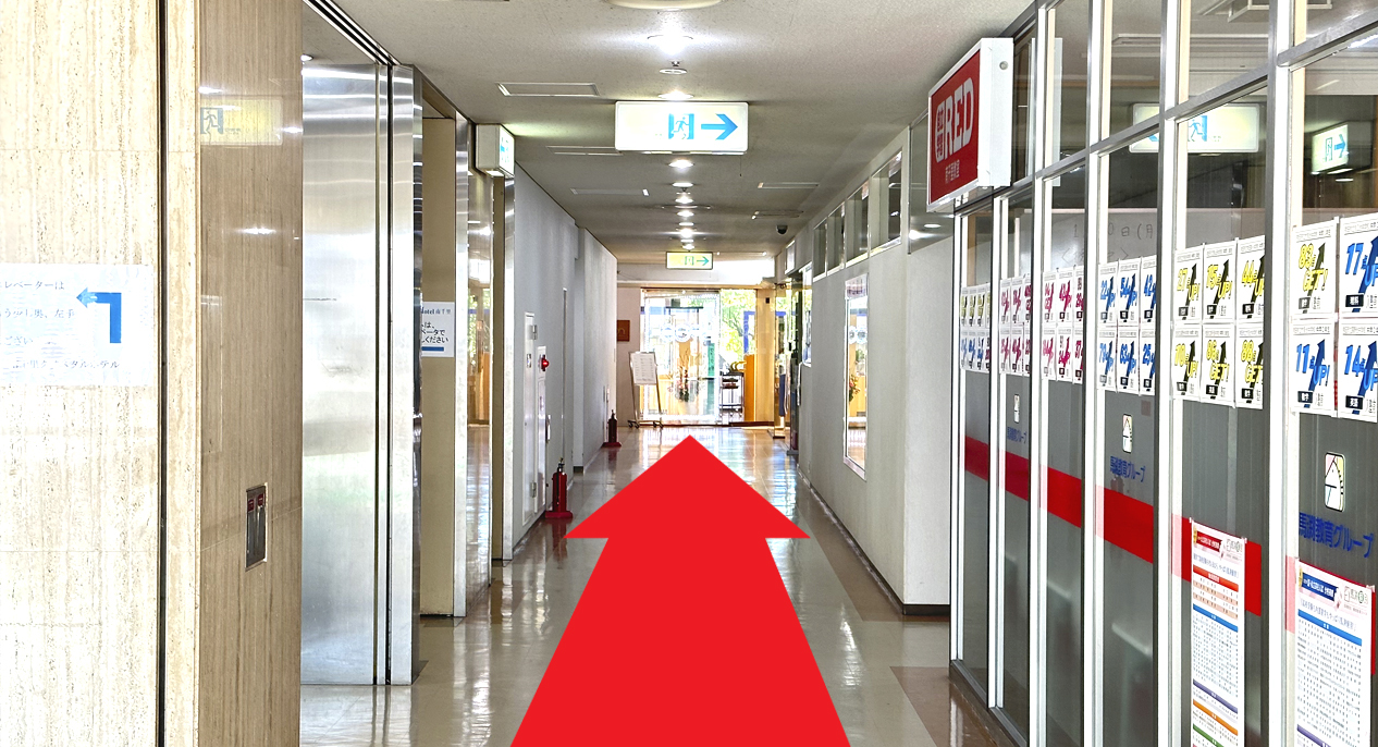 エレベーターを降りて右方向へお進みください。