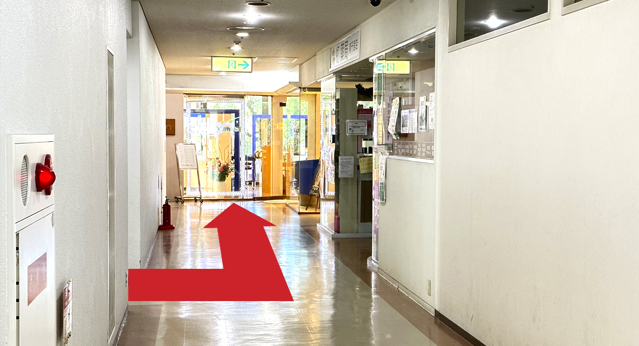 通路をまっすぐにお進みください。