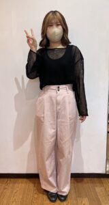 ブラックのトップスでかっこいい感じだけど淡いピンクで可愛らしさをプラス💕